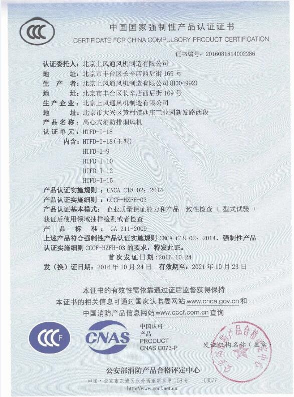 消防产品认证证书