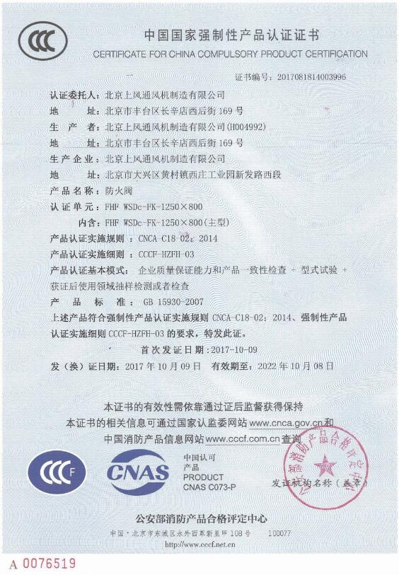 消防产品认证证书